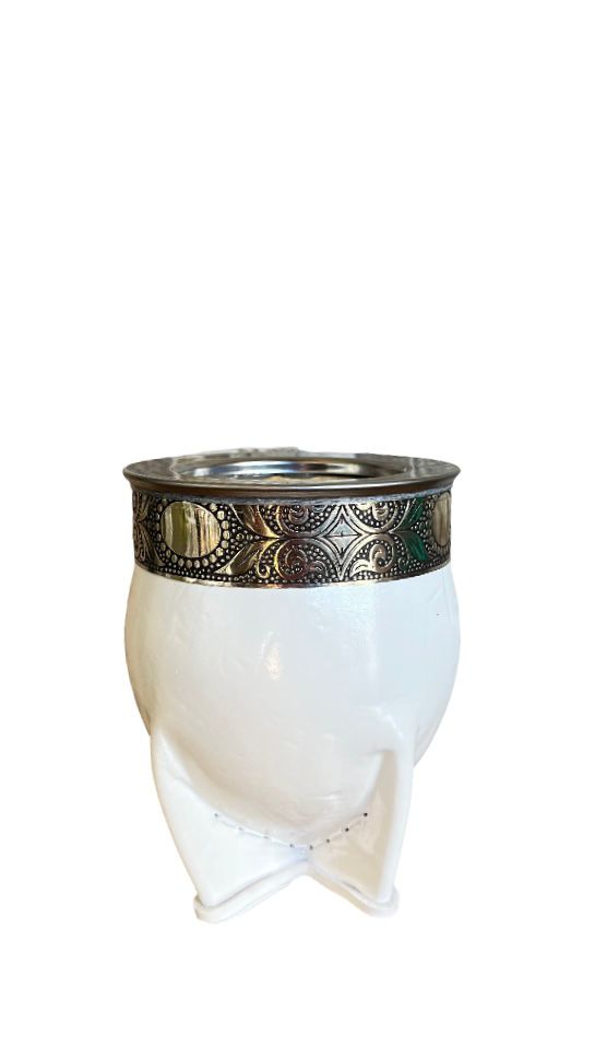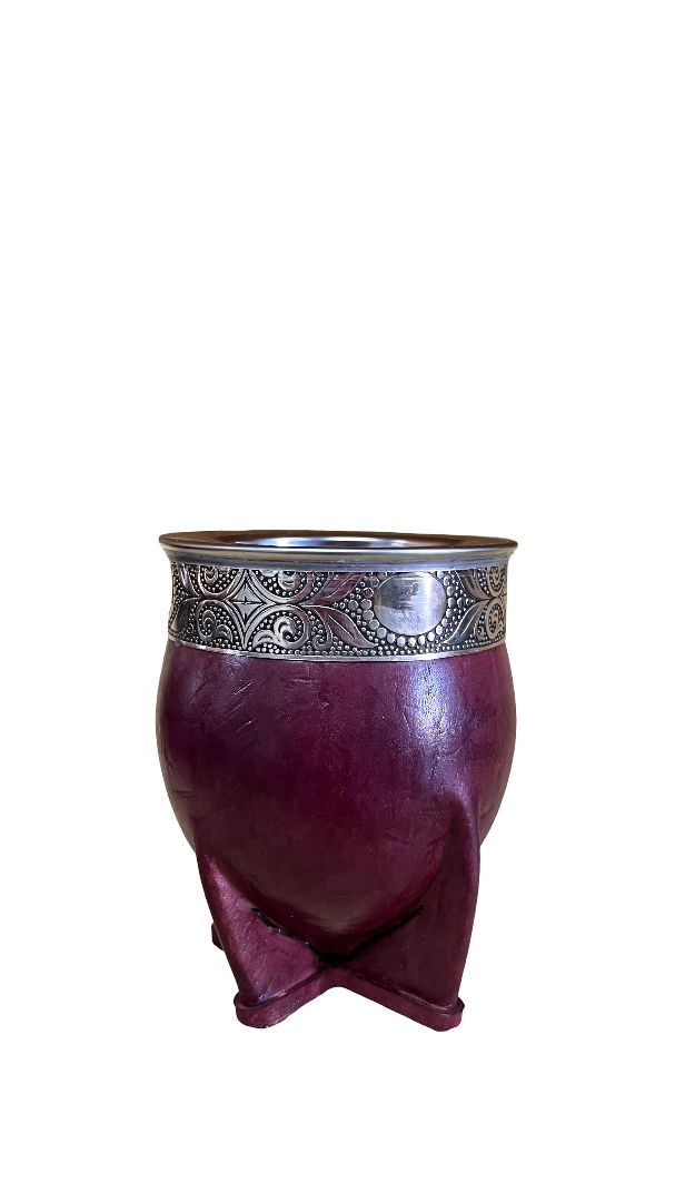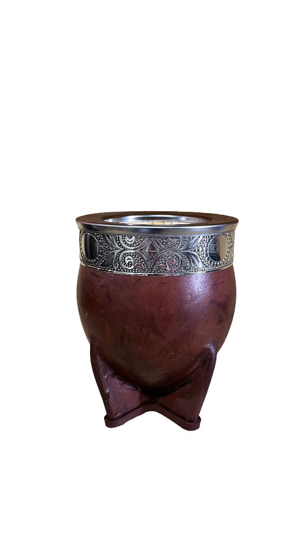 Mate imperial de calabaza, forrado en cuero con guarda abstracta de alpaca y virola de acero lisa
